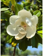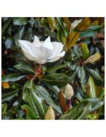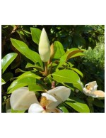 Magnolia sempreverde nana e compatta (arriva molto lentamente a 4-5 m di altezza per 2,5 di larghezza). Ha magnifici grandi fiori profumatissimi color panna, di lunga durata, che vengono prodotti tutta la bella stagione finchè le temperature si mantengono sopra i 20°C, da primavera ad autunno.