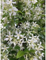Rami flessibili lunghi fino a 6-8 m, foglie verdi lucide che in inverno assumono toni bronzei. Fiori bianchi stellati e molto profumati da fine primavera.