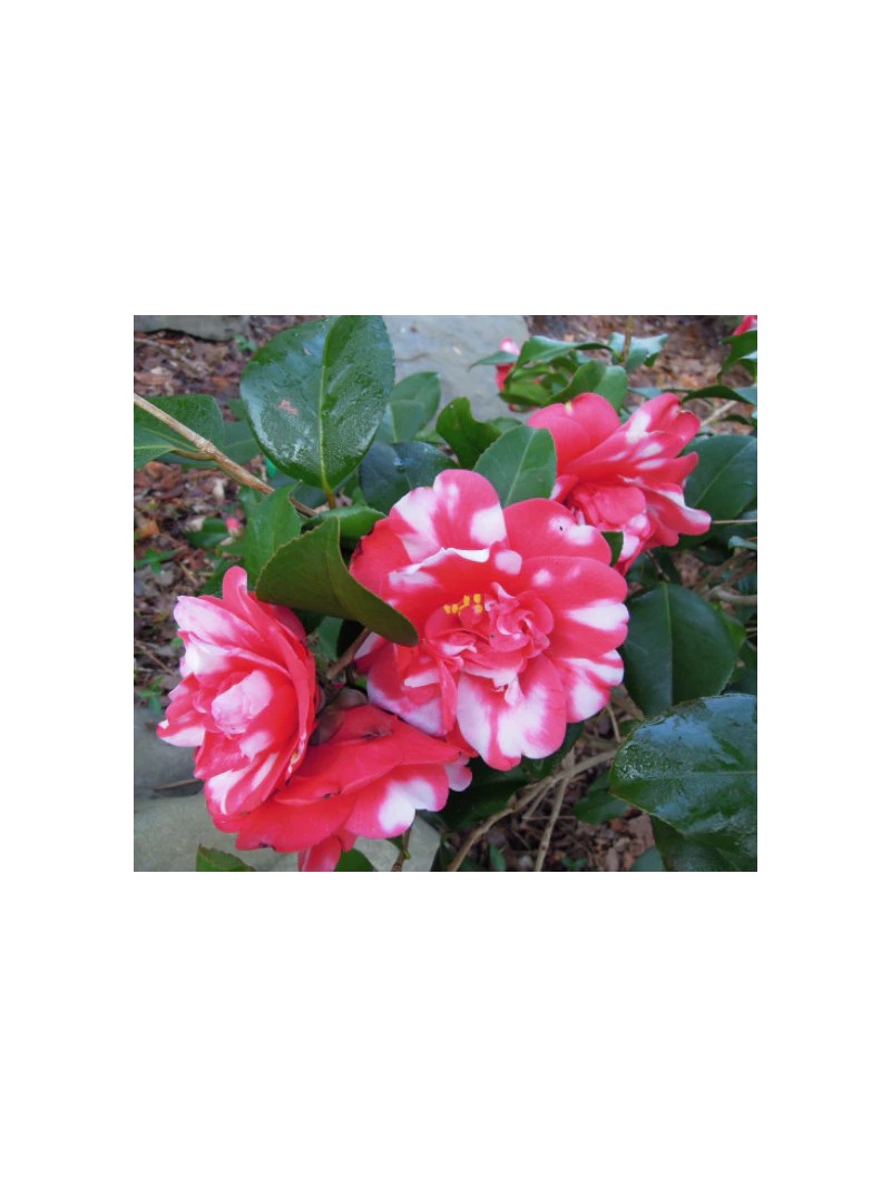 Camelia rossa screziata bianca "Camellia japonica" pianta sempreverde in mastello ø45 cm h. 150/170 cm