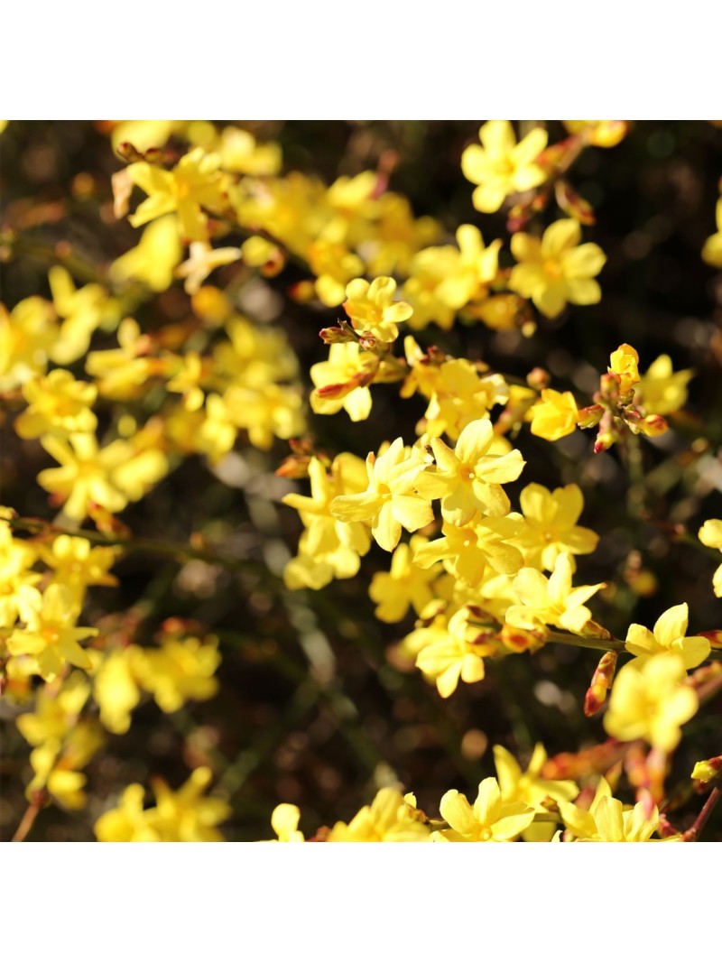 Il Jasminum nudiflorum è uno dei pochi arbusti in grado di fiorire in pieno inverno, regalando colore e vitalità al giardino quando la maggior parte delle piante è ancora ferma. Non va confuso con i gelsomini profumati estivi: questa varietà non ha profumo, ma eccelle per resistenza e tempismo.