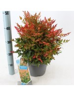 Arbusto sempreverde a crescita lenta e compatta, dal portamento cespuglioso e ordinato. Raggiunge 60–100 cm in altezza e larghezza, senza necessità di potature. Le foglie sono leggere, finemente suddivise e decorative tutto l’anno: verde chiaro in primavera, verde brillante in estate, rosse e bronzate in autunno e inverno. Non produce bacche come la specie tipo. In primavera può emettere piccoli fiori bianchi riuniti in pannocchie.