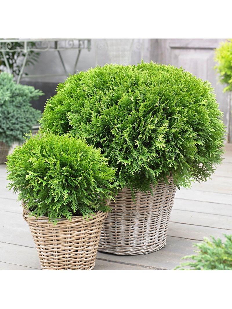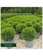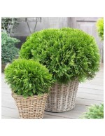Thuja Occidentalis 'Danica' è una conifera a forma di palla regolare e a vegetazione lenta e compatta, con numerosi rami verdi, sottili e molto fitti.