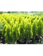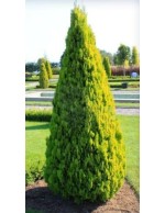 Thuja Orientalis 'Pyramidalis Aurea' è conifera dalla forma conica stretta e con un bel fogliame dorato, molto sottile in primavera, giallo verdastro in estate e poi bronzo in inverno.