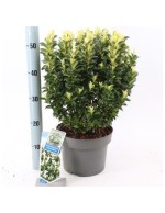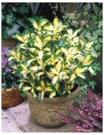 Arbusto sempreverde che può raggiungere altezze fino ad arrivare a 4 metri di altezza e 2 di larchezza, con una crescita media. Ha delle foglie consistenti, verdi o variegate nel colore giallo, fiori insignificanti in primavera.