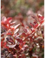 CARATTERISTICHE: il Berberis thunbergii atropurpurea è un arbusto caducifoglia a portamento eretto, con piccole foglie di color rosso porpora scuro, rami spinosi e produzione di piccole bacche color rosso vivo