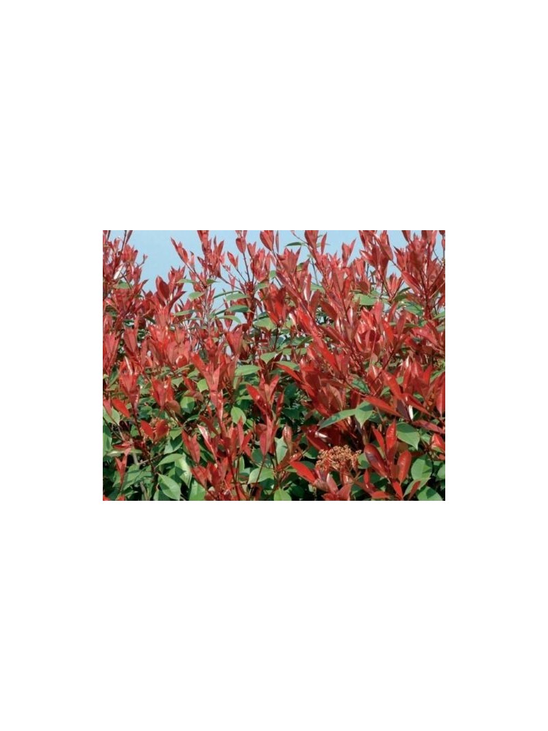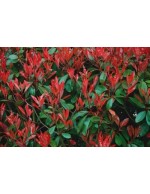 La Photinia x Fraseri Red Robin Photinia Compatta originaria della Nuova Zelanda. E' un arbusto compatto sempreverde di forma nana, a portamento rotondeggiante, con molti rami folti. E' caratterizzato da foglie ,della nuova vegetazione, sono di uno straordinario rosso vivo a bronzeo e in primavera-estate virano gradualmente al verde. A Maggio produce fiori piccoli, bianco-rosa, riuniti in pannocchie, seguiti da frutti rossi.