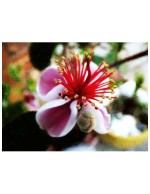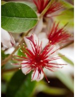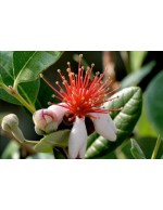 La pianta produce una splendida fioritura bianca carnosa con lunghi stami rossi, in Luglio-Agosto, seguita da frutti commestibili al profumo di ananas.