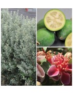 Acca (o Feijoa) Sellowiana è un arbusto dalla forma eretta e a fogliame persistente, arrotondato, verde sopra e grigio lanuginoso sotto.