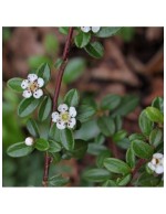 Arbusto molto rustico dal fogliame persistente verde scuro lucido, a piccole foglie ovali. Abbondante fioritura bianca in Maggio e Settembre, molto persistente durante l'inverno. Frutti globosi di 6-7 mm, color rosso corallo. Il Cotoneaster Dammeri è ideale per tutti i terreni, anche calcarei e gradisce un'esposizione al sole o a mezz'ombra.