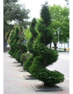 Il Cupressocyparis leylandii è un sempreverde ornamentale usato per arte topiaria in forme come pon pon, cono, palla e spirale.