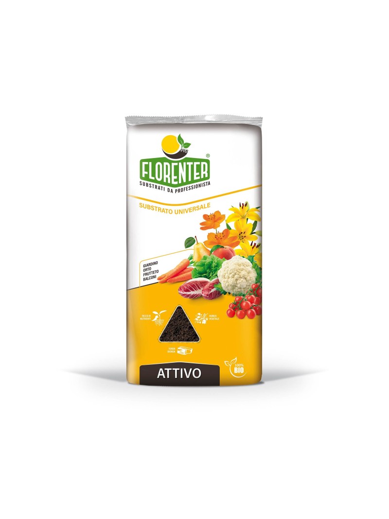 ATTIVO è un substrato ideale per le coltivazioni orticole e frutticole. È caratterizzato da un elevato contenuto in carbonio organico umificato e da un equilibrato apporto di elementi nutritivi che permettono l'ottimale sviluppo vegetativo e produttivo delle piante coltivate. Uno dei componenti principali di ATTIVO è il compost verde, prodotto mediante compostaggio aerobico di scarti verdi da manutenzione di parchi e giardini. Grazie all'attività di recupero della sostanza organica di origine esclusivamente vegetale ed alla sua umificazione (trasformazione di lignina e cellulosa in humus, come avviene nell'ambiente naturale del bosco) viene valorizzato al massimo il carbonio che costituisce il nutrimento principale per l'attività microbica del suolo. Sono inoltre presenti importanti molecole organiche come acidi umici, acidi fulvici e aminoacidi.