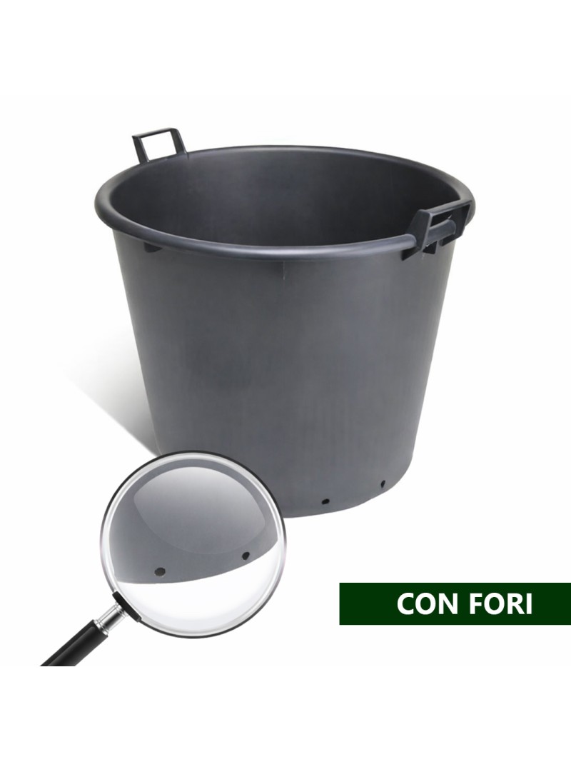 Mastello in plastica nero con manici e fori mastellone tino tinozza giardino con diversi diametri